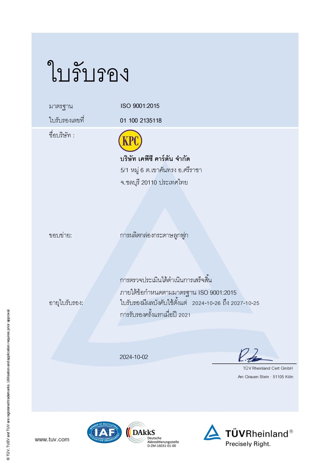 โรงงานผลิตกล่องกระดาษลูกฟูกกันน้ำ - เคพีซี คาร์ตัน